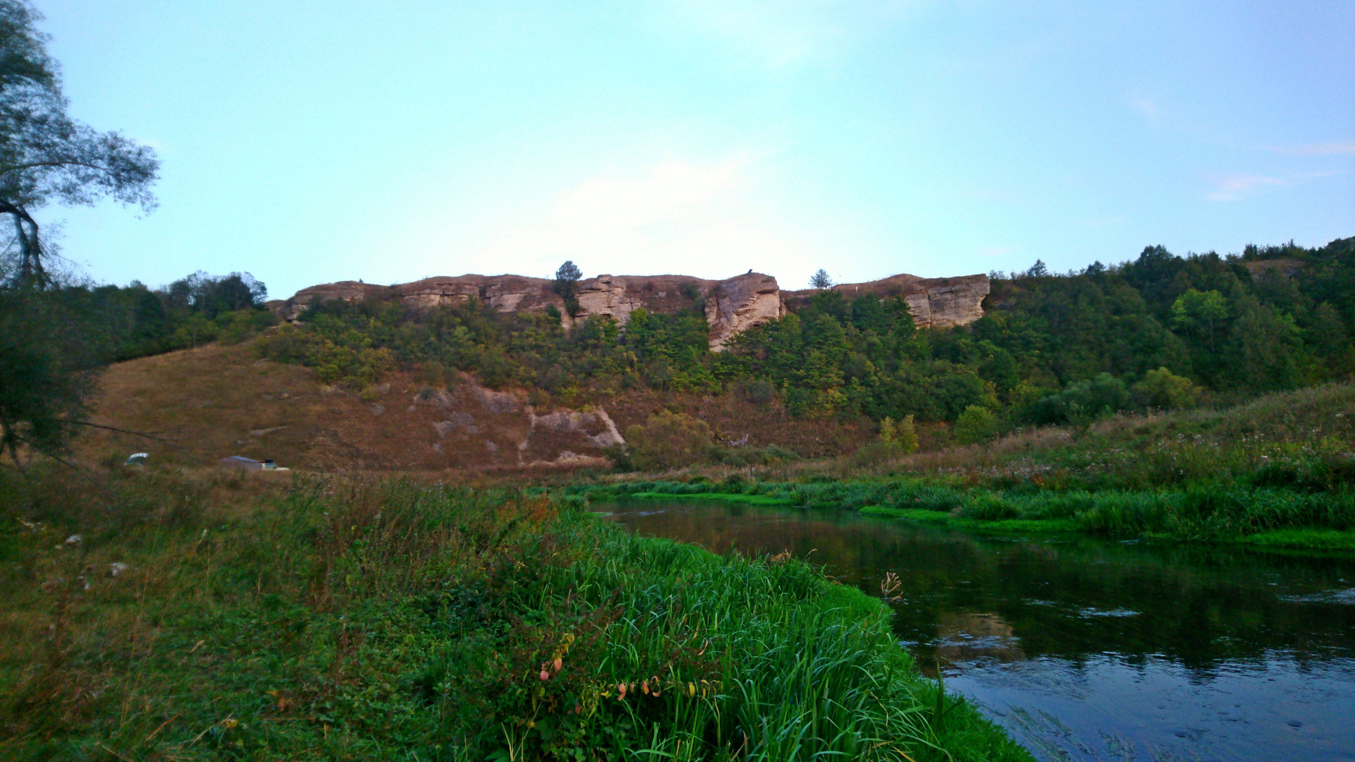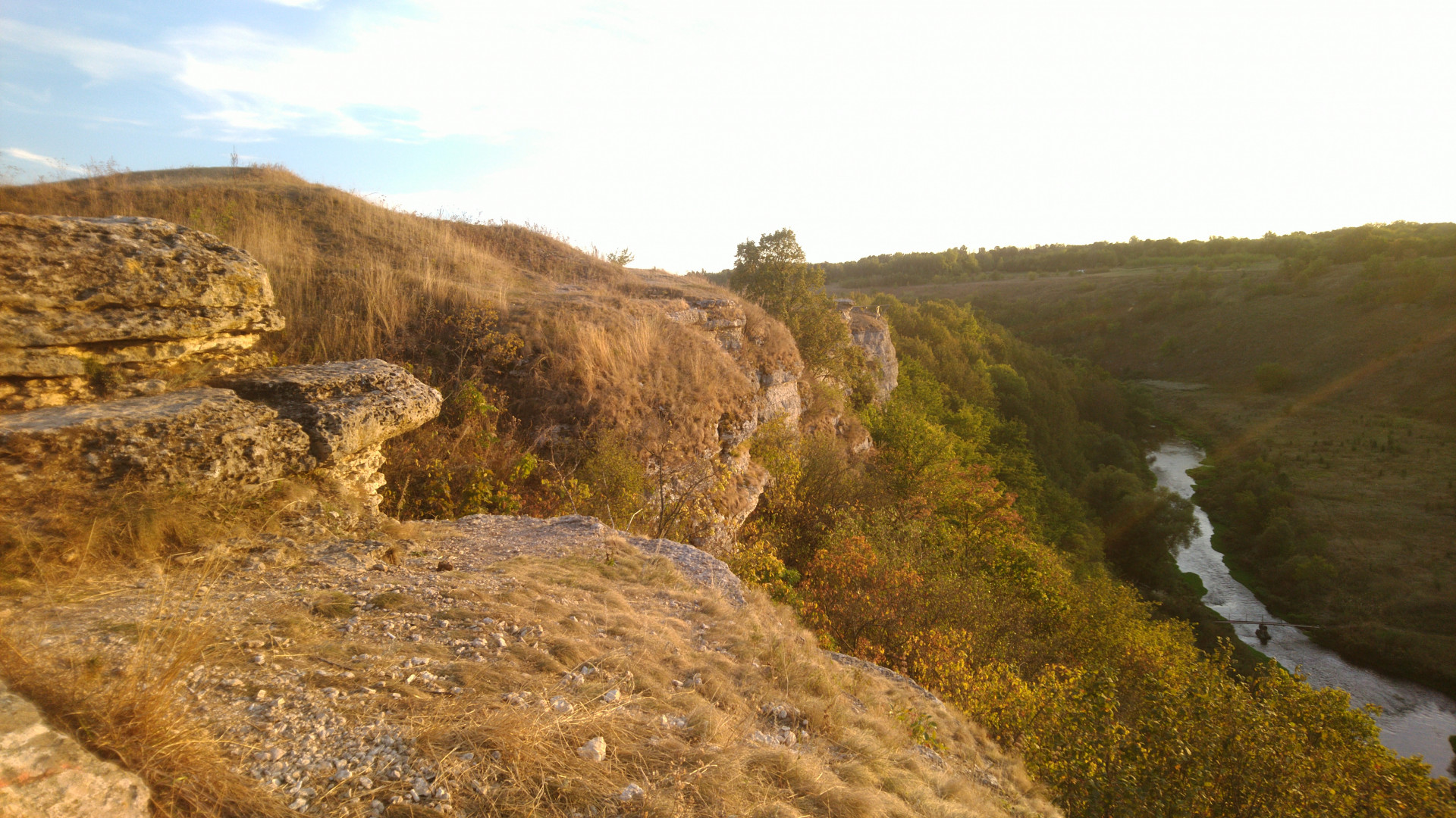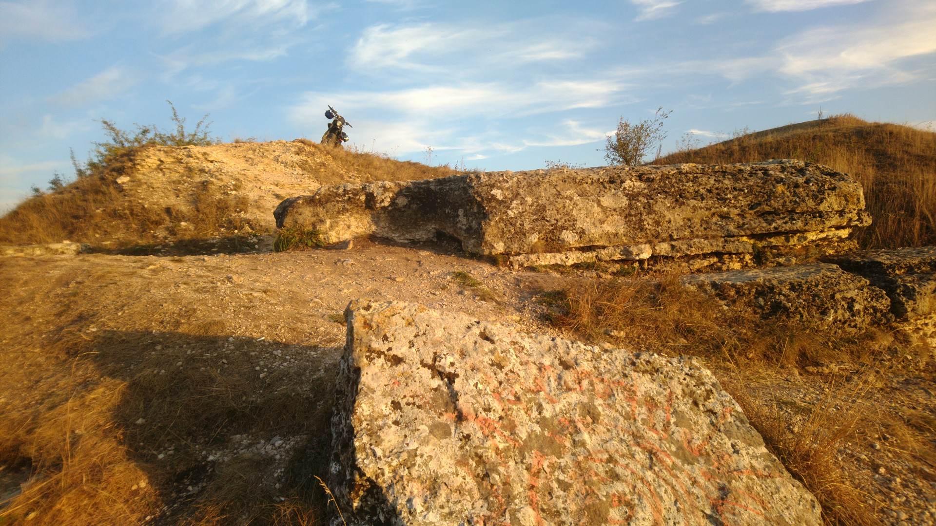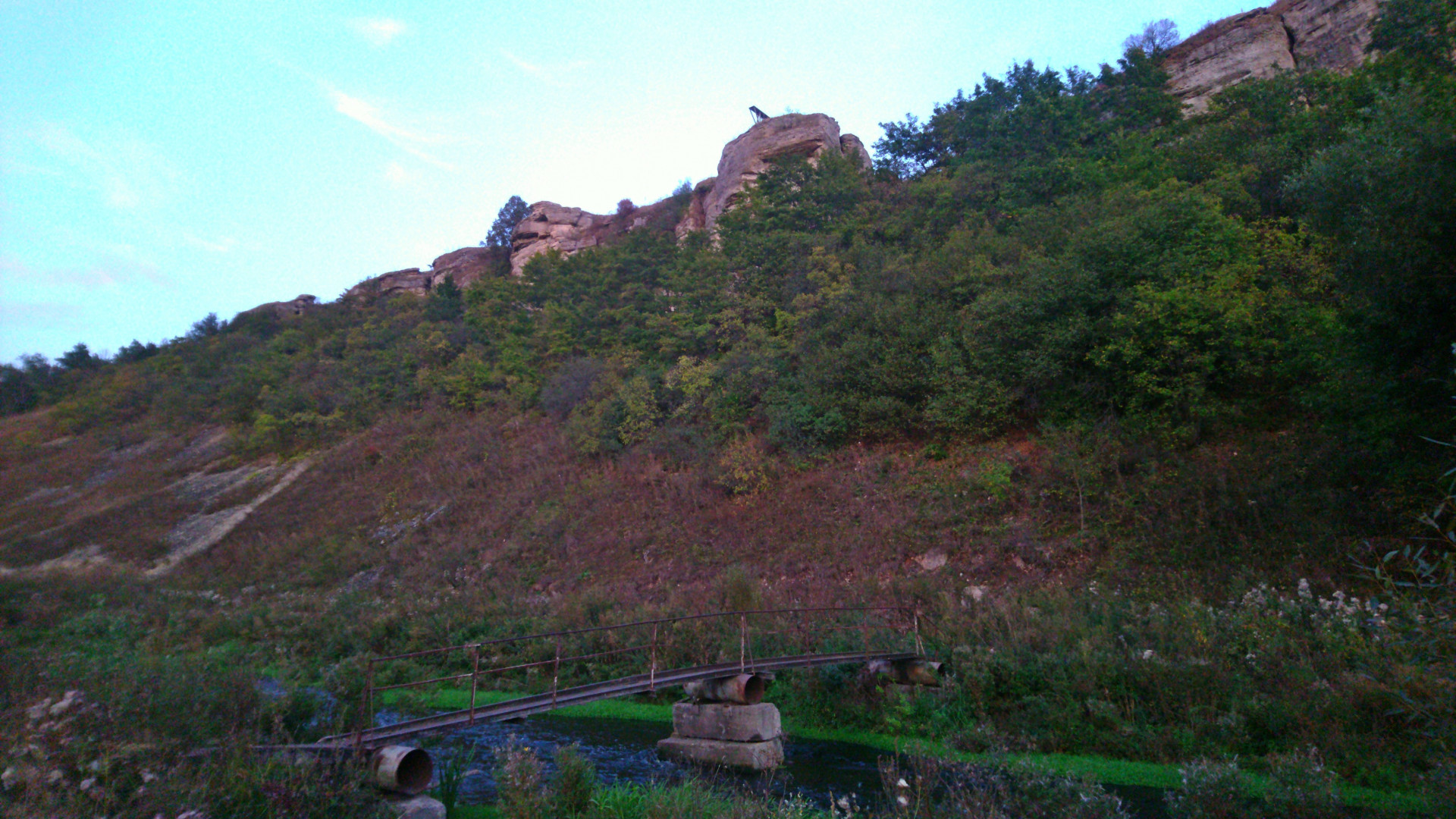 В начале сентября, пока ещё не совсем похолодало, уговорил друга прокатиться посмотреть на Воргольские скалы. Сначала заехали до мельницы, посидели на камушках, затем спустились к реке у моста, в конце полазили возле скал Звонари. Доехать до скалы за мельницей уже не было времени, надеюсь будет время исправить это упущение.