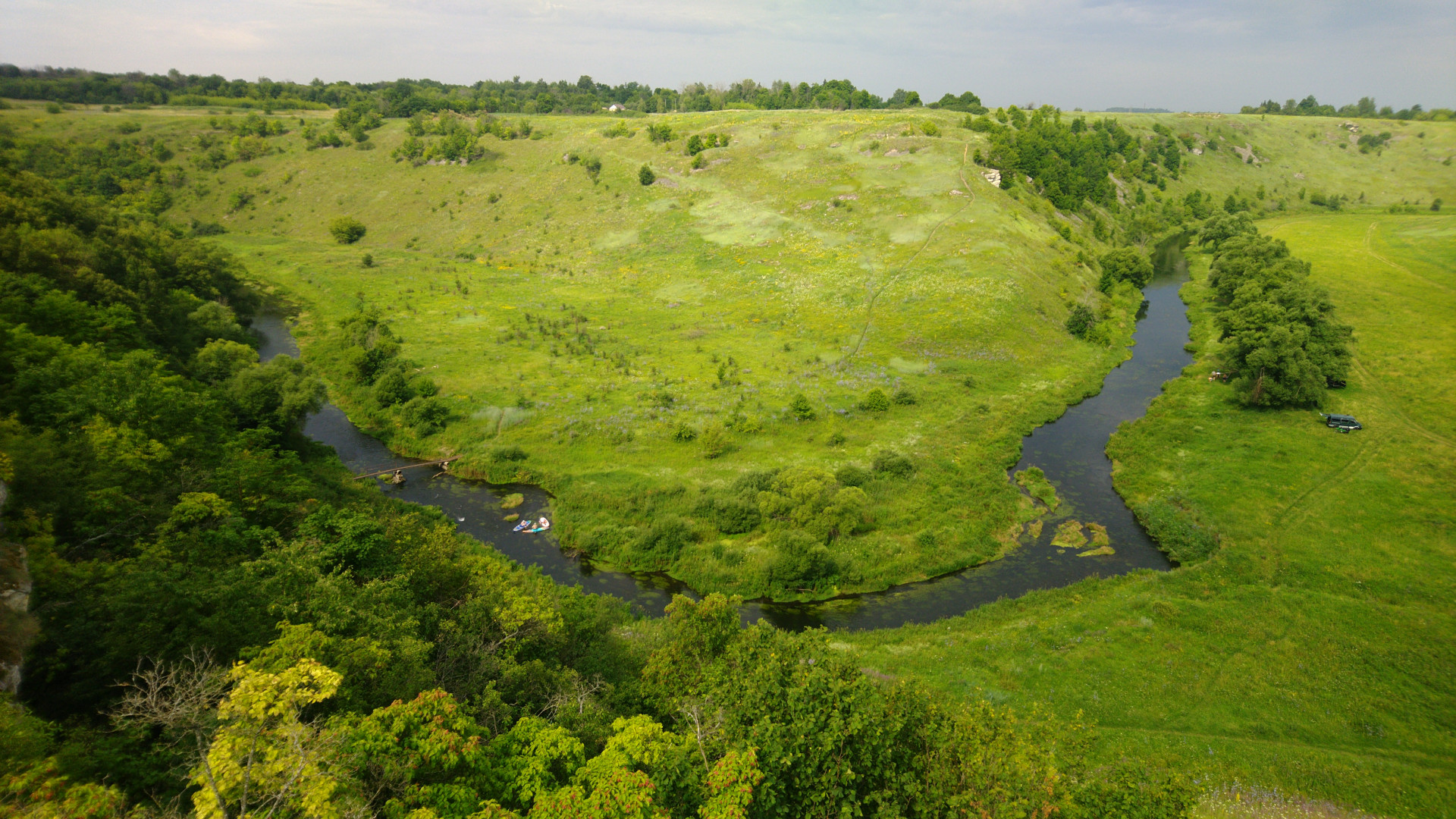 , на этот раз с ночёвкой и шашлыками. Речка оказалась настоящей горной - мелкой, быстрой и холодной, но в жару было очень кстати. Сабордеры тем не менее вполне себе бороздили, скалолазы также присутствовали. До Воронового камня опять не доехал.